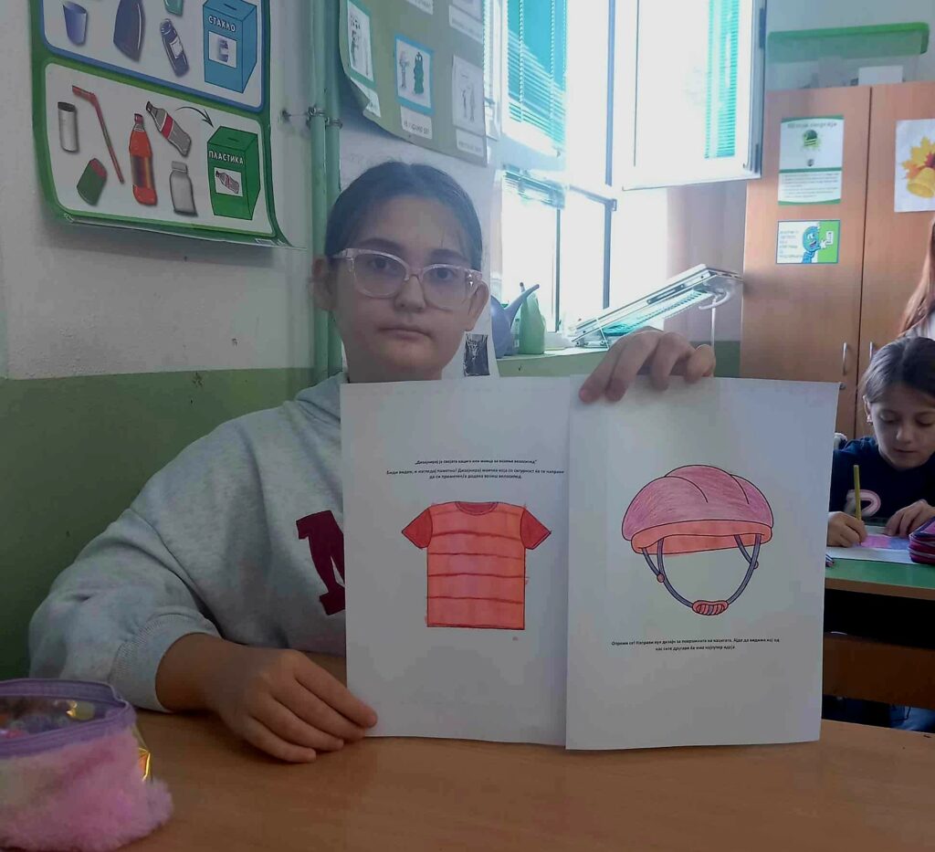 Денес учениците од V одд. со наставничката Ана Јанушева во рамките на проектот ,,Вело училиште за месец октомври” ја спроведоа активноста ,,Дизајнирај ја својата заштитна кацига или маица за возење на велосипед”. Со оваа активност секој ученик ја изразува својата креативност преку свој уникатен дизајн за заштитна кацига или маица.