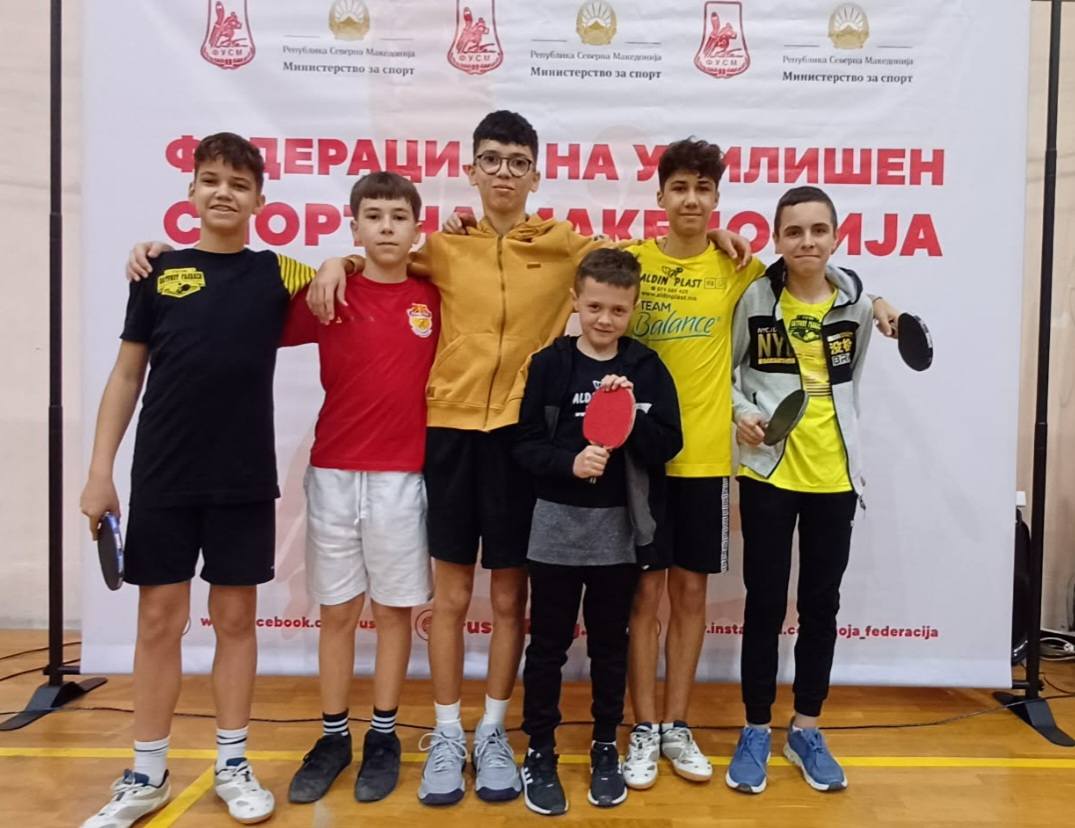 Во организација на Федерација на училишен спорт вчера во Пехчево се одржа државно првенство во ПИНГ-ПОНГ за основни и средни училишта во машка и женска конкуренција. Од нашето училиште земаа учество учениците Давуд Мемиќ од 9 одд. и Дарис Мемиќ од 6 одд.. Давуд се пласира меѓу 16 најдобри во државата а Дарис стаса до полуфинале.