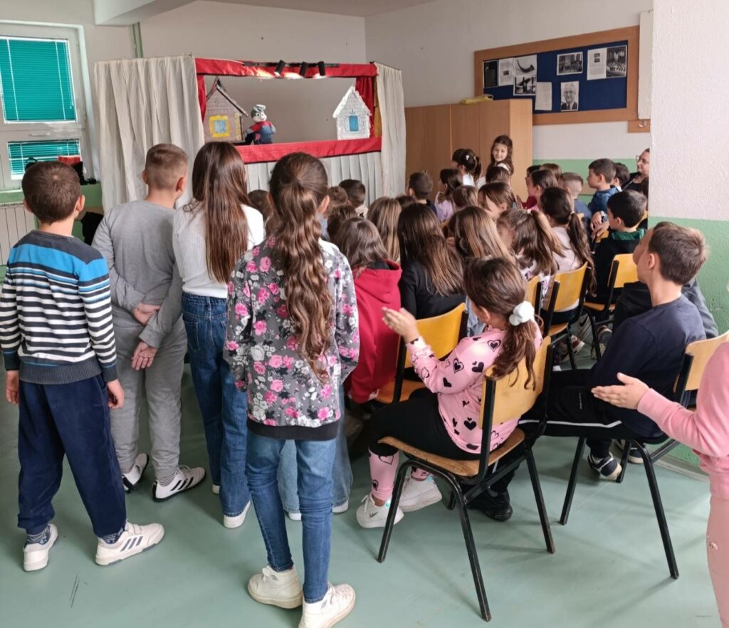 Куклена претстава за деца ,,Зајко Трајко” октомври 16, 2025 Настани и проекти На 15.10 во нашето училиште се одржа весела куклена претстава, која ги развесели нашите ученици од 1 до 5 одд. и ги охрабри да размислуваат преку игра и смеа.