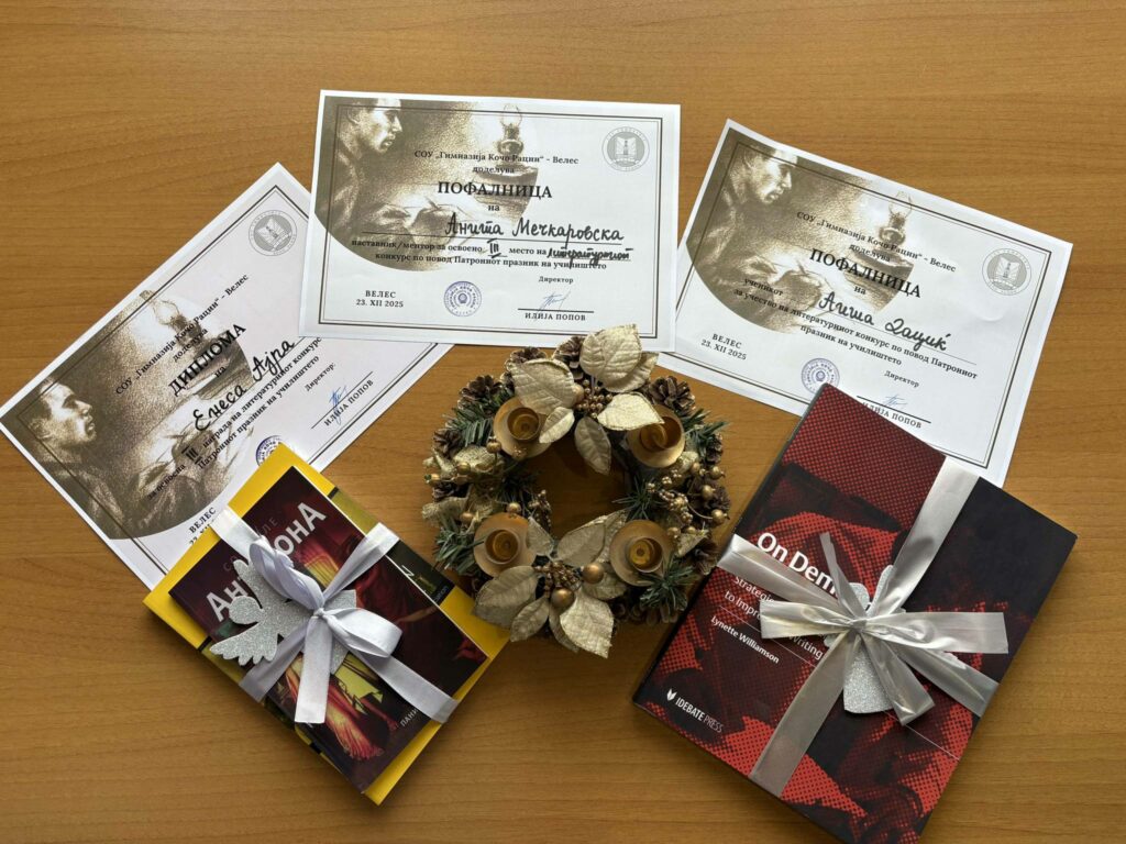 По повод патрониот празник на СОУ ,,Гимназија Кочо Рацин’’ нашите ученички Енеса Ајра и Аиша Дациќ учествуваа на литературниот конкурс на тема:,,Мајката на Рацин – тивка сила за гласен збор’’. Ученичката Енеса Ајра освои трета награда, а Аиша Дациќ пофалница.