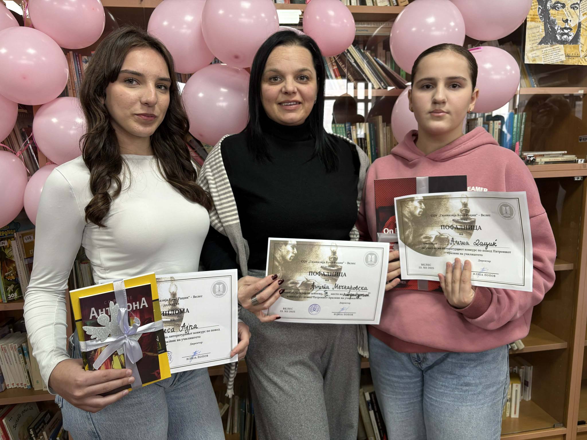 По повод патрониот празник на СОУ ,,Гимназија Кочо Рацин’’ нашите ученички Енеса Ајра и Аиша Дациќ учествуваа на литературниот конкурс на тема:,,Мајката на Рацин – тивка сила за гласен збор’’. Ученичката Енеса Ајра освои трета награда, а Аиша Дациќ пофалница.