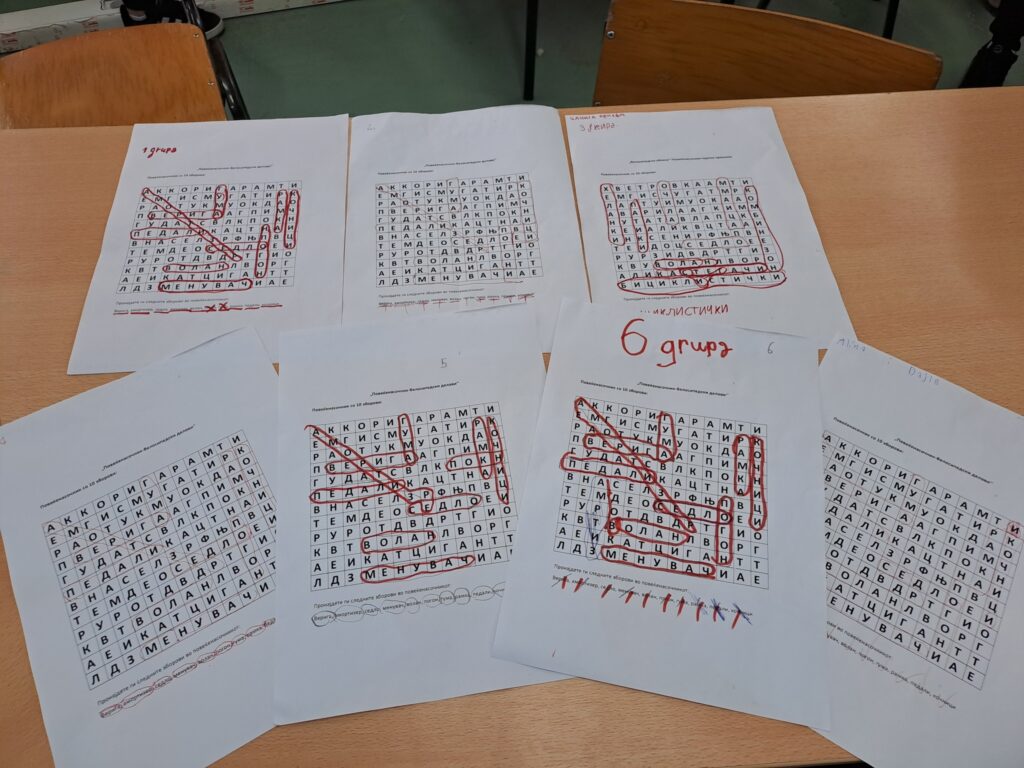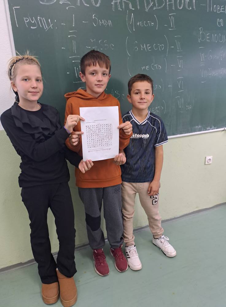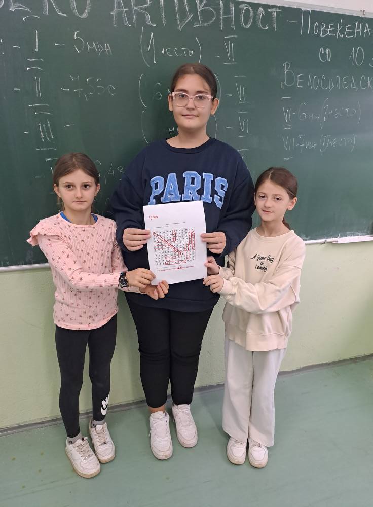 Денес со учениците од V одделение се реализира забавна и едукативна активност –,,Повеќенасочник со 10 имиња”- на делови од велосипед. Учениците поделени во неколку групи се натпреваруваа кој нсјбрзо ќе ги пронајде сите 10 поими. Одговорен наставник: Есма Калач.