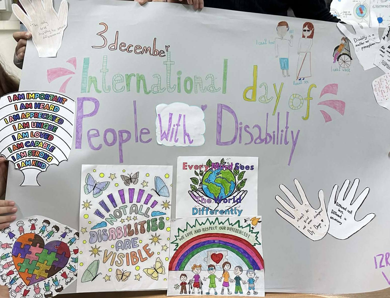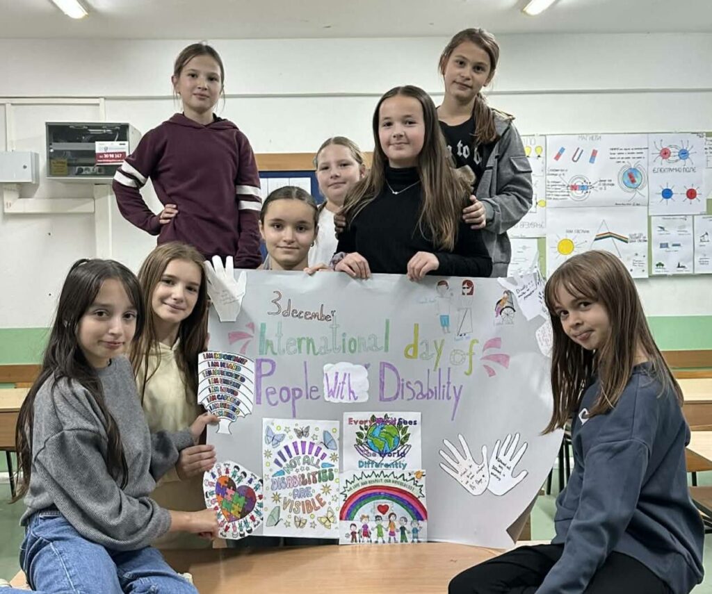 По повод 3 Декември – Меѓународниот ден на лицата со попреченост, учениците од 6 одд. со наставничката по англиски јазик Маја Гемишова Таневска изработија хамер со пораки за поддршка, прифаќање и еднаквост.